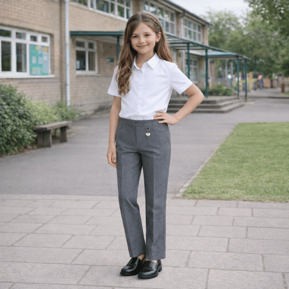 Our girls eco school trousers with elastic back waist are designed for comfort, durability and everyday school wear. These girls school trousers are made from a sustainable blend of 65% polyester and 35% viscose eco fabric, offering a smart tailored look with flexible comfort. The elasticated back waist provides an easy fit that makes these pull on girls school uniform trousers UK parents trust for primary and secondary school. Practical, comfortable and hard wearing, they are ideal for busy school days.